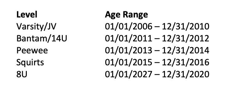* There will be a $200 late fee accessed to registrations completed after August 1st for State League (Varsity, JV, Bantams, Girls 14U, and Peewee)